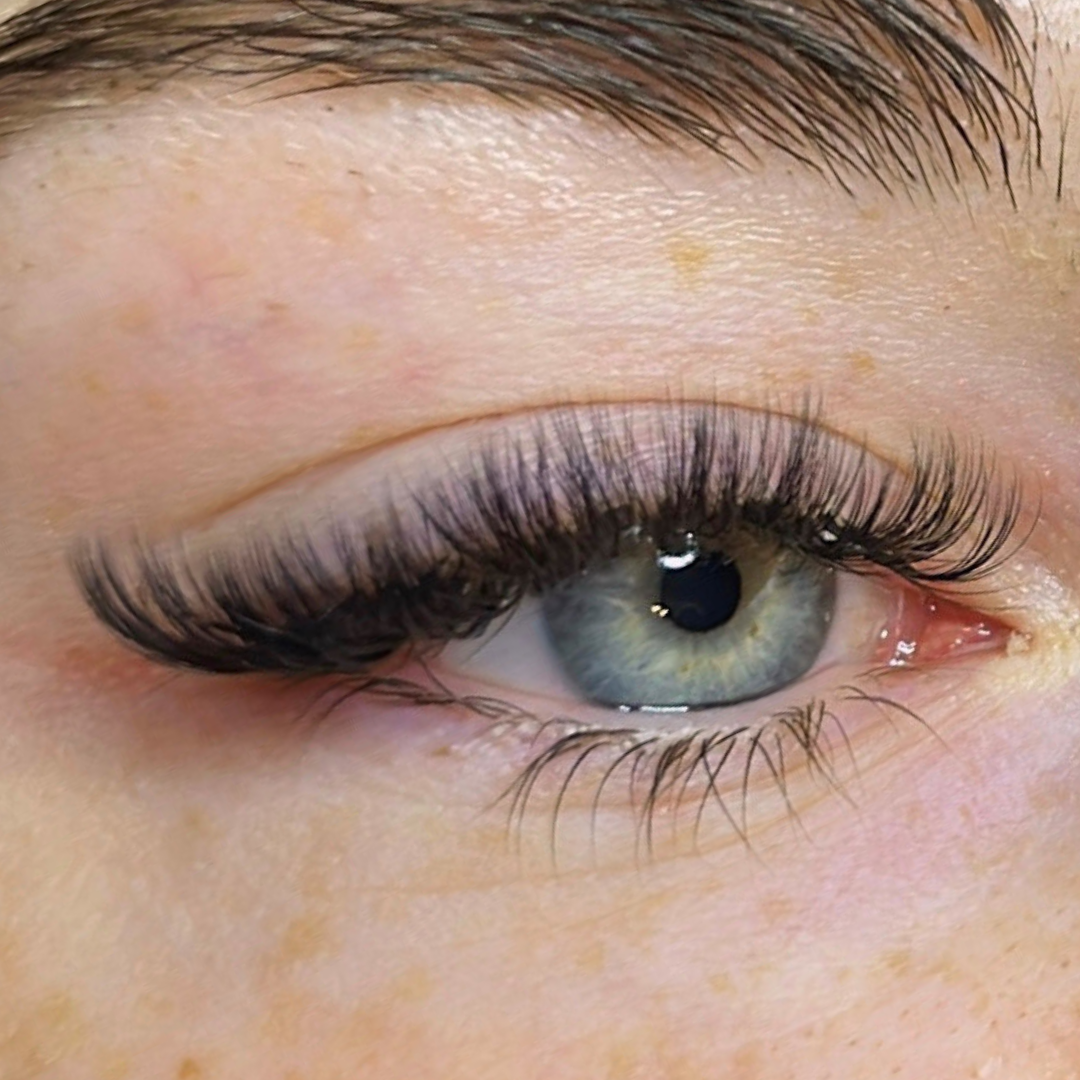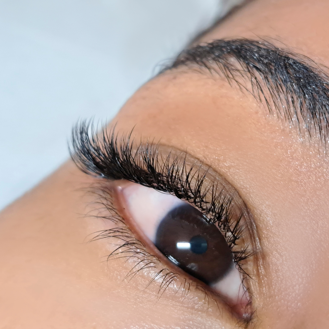 Une combinaison de extensions individuelles et de bouquets légers offre un effet multidimensionnel, ajoutant à la fois longueur et volume pour un regard subtilement complet.